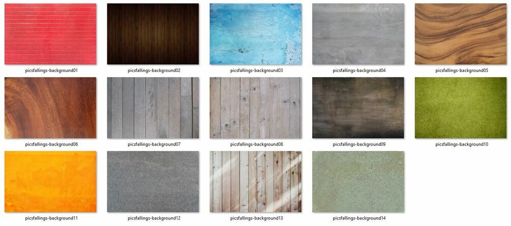 14 high quality backgrounds are included in the zip (to see a screen capture of the textures, click on the second little white circle at the bottom of the YouTube video on this page)